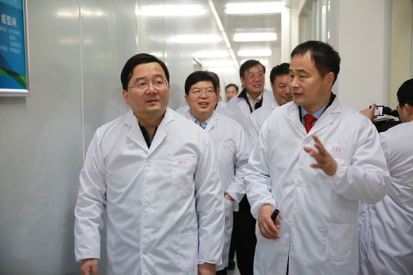 劉廳長(zhǎng)一行先后參觀了公司研發(fā)生產(chǎn)中心和會(huì)展中心,對(duì)現(xiàn)有的13條生產(chǎn)線都進(jìn)行了詳細(xì)詢問(wèn)。