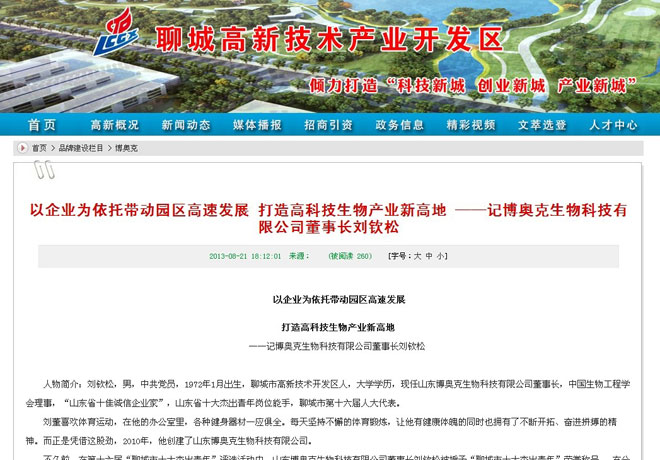 2013年,公司經(jīng)過三年長足發(fā)展,已經(jīng)成為以研制高新生物產(chǎn)品為主,集研發(fā)、生產(chǎn)、銷售為一體的綜合性高新技術(shù)企業(yè)。而且以其為龍頭,在聊城高新技術(shù)產(chǎn)業(yè)開發(fā)區(qū)成立了生物科技產(chǎn)業(yè)園,為聊城市的發(fā)展作出了突出貢獻(xiàn)。