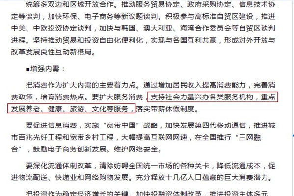 2014年政府工作報(bào)告:要擴(kuò)大服務(wù)消費(fèi) 重點(diǎn)發(fā)展養(yǎng)老健康旅游文化