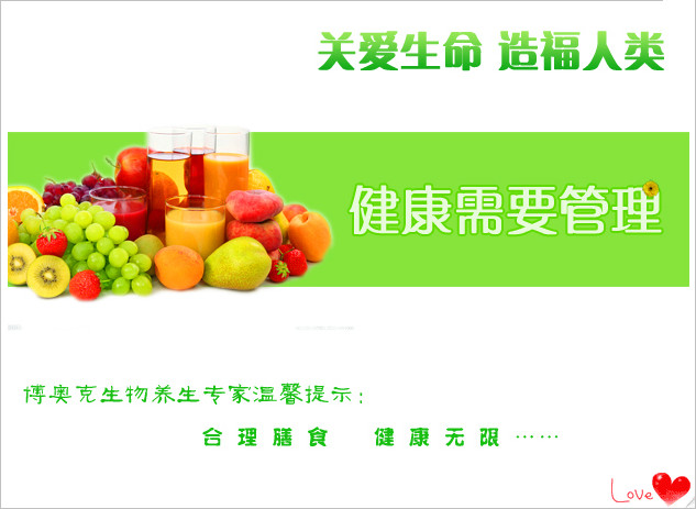 最后,小編及博奧克生物養(yǎng)生專(zhuān)家祝您身體健康,工作愉快,并提醒您:合理膳食 健康無(wú)限……